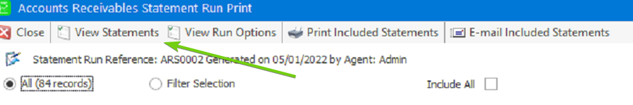 - On the Print screen, you first need to retrieve all the Statements. You can either add a filter, or click on "All" and hit "View Statements".