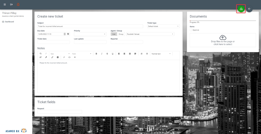 A new ticket can easily be created by clicking on the create ticket button shown below: