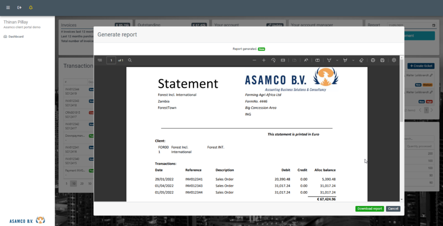 The statement can then be downloaded by clicking on the green download button on the bottom right of this pop-up screen.