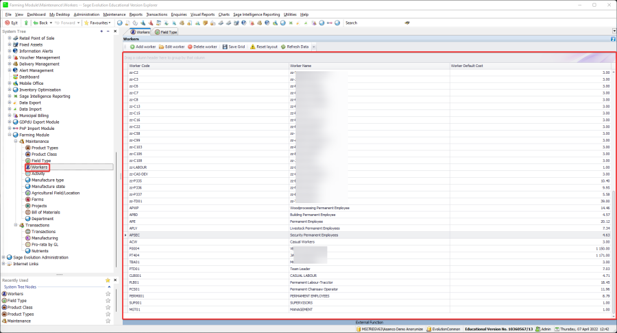 To view the workers overview screen, click on the left tree menu and you will see the following screen displayed.