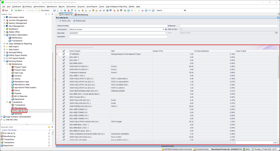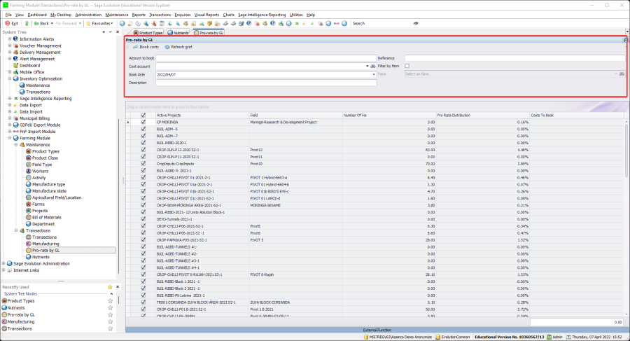 To book cost, fill out the mandatory information by filling in the amount to book, the cost amount, booking date, description, and reference. Your pro-rata GL will then be added to the overview screen.