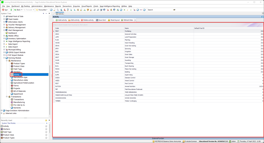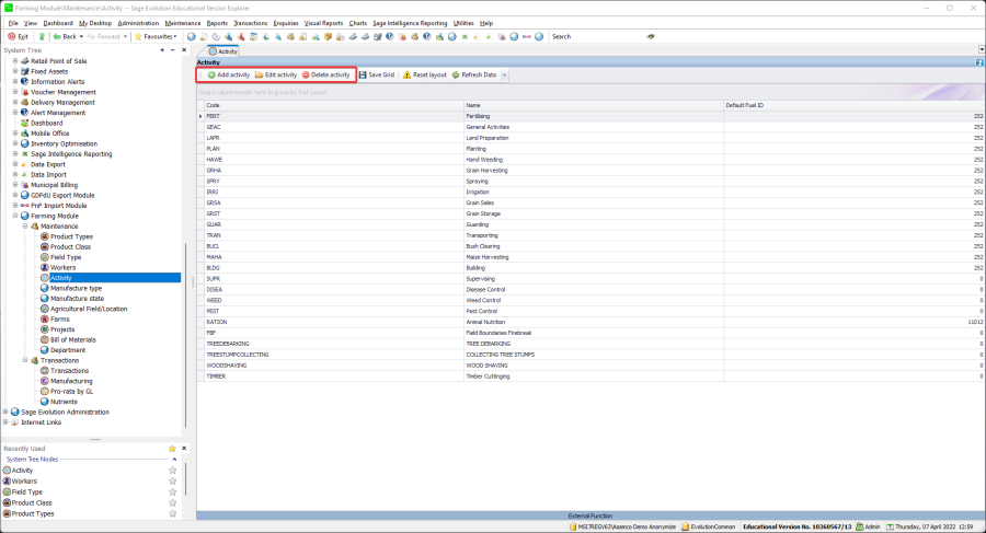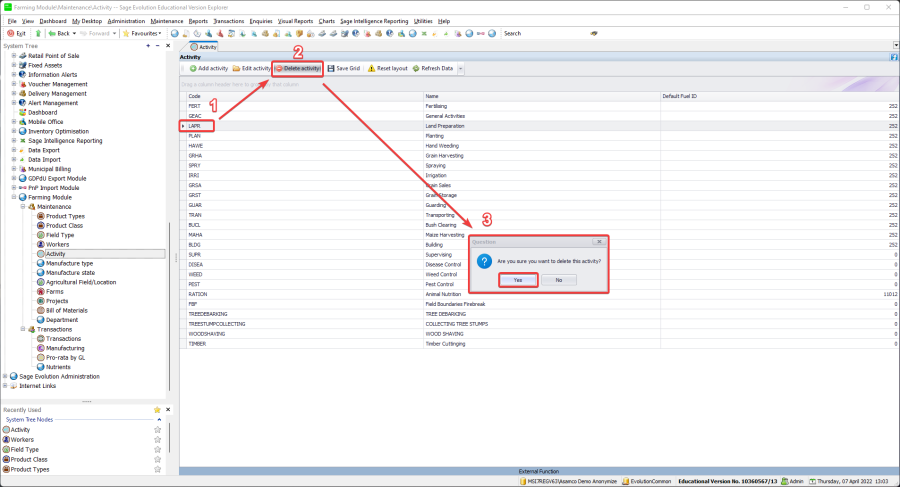 To delete a field type, firstly select the activity you would like to delete and then click the delete button and click on yes to confirm.