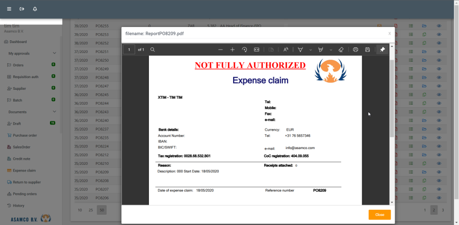 Generate the PDF document by clicking the PDF button, the report will be generated with the report layout that is configured.