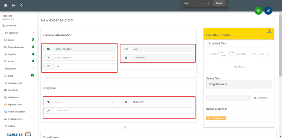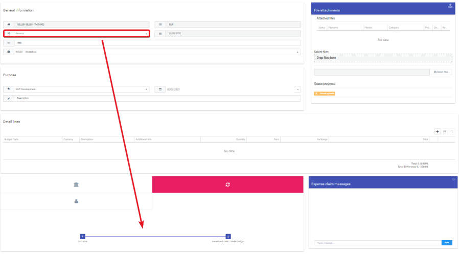 It is possible to add attachments to an EC. The added files will be linked to the EC and will be stored with a link to this "EC". This can be used to upload your supporting documentation for the EC such as the receipts and slips for the expenses you are claiming from the company.