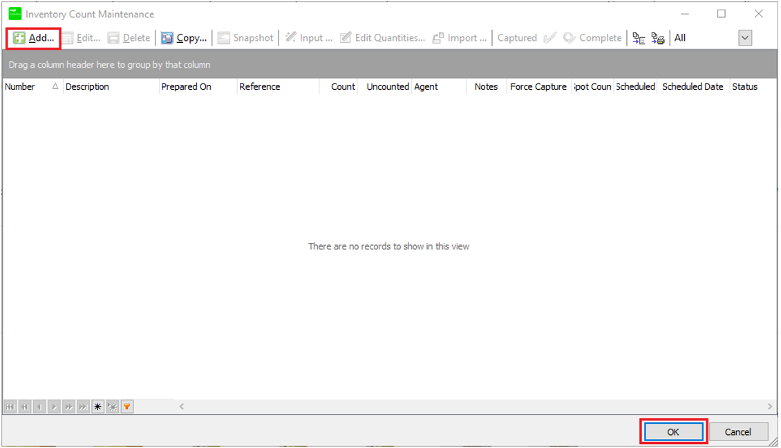 When you are done configuring the settings of the count, you can click on the “OK” button to create the inventory count.