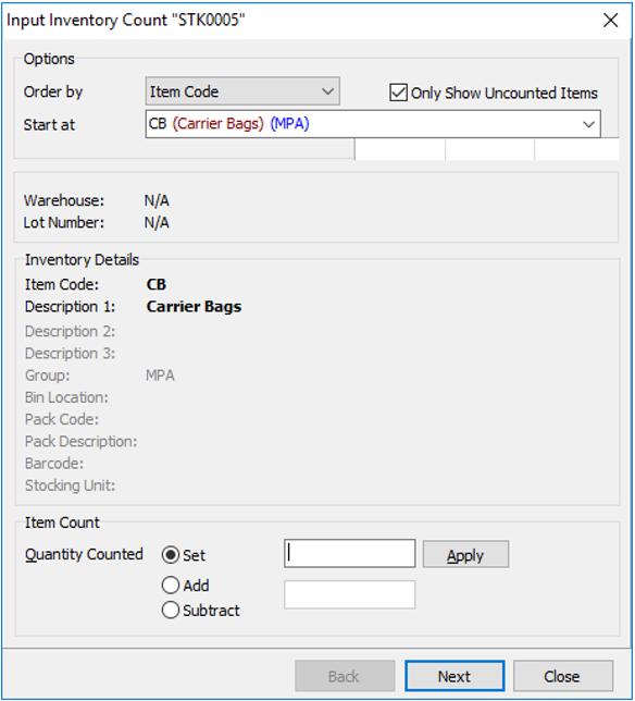 Only show uncounted items: Select this if you only want to show the uncounted items.